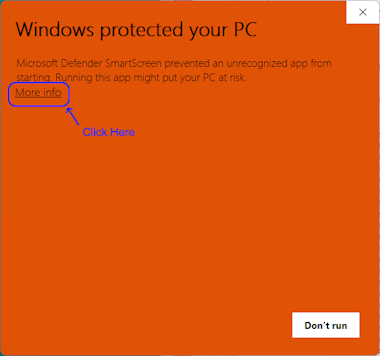 Click the Run Anyway button. Defender isn't very smart and gets